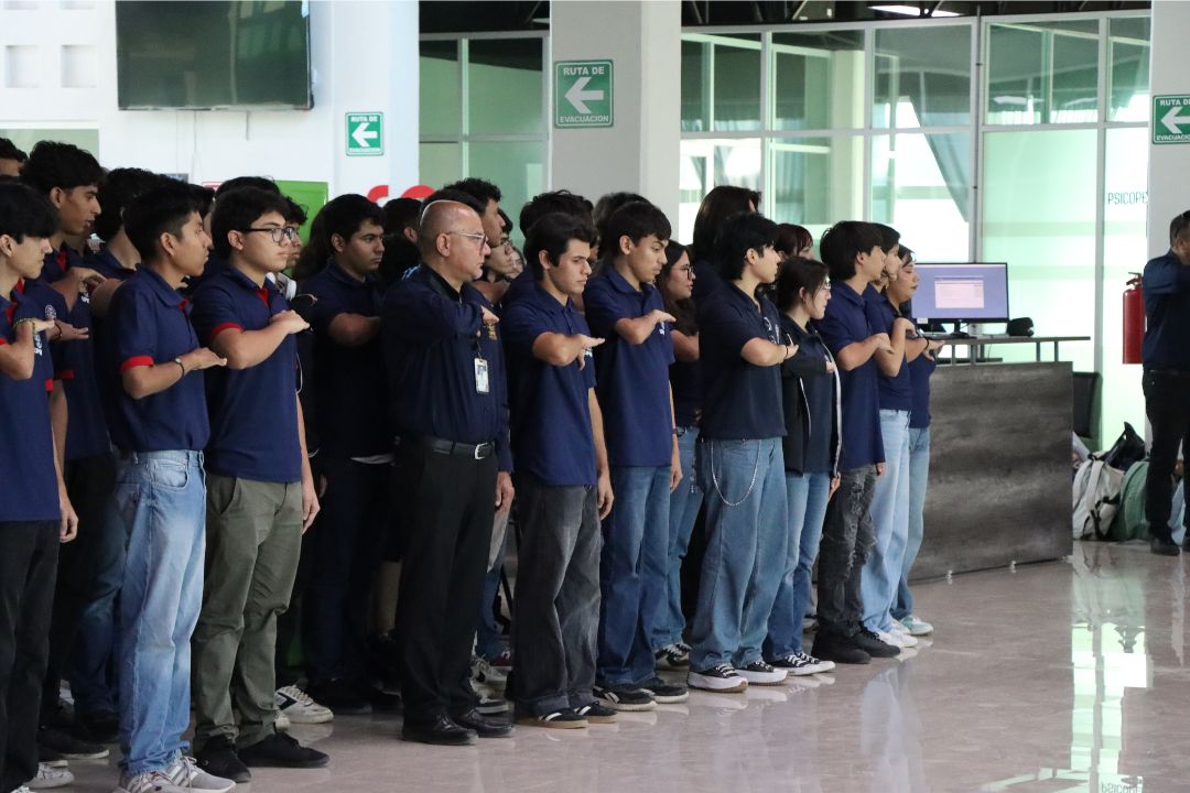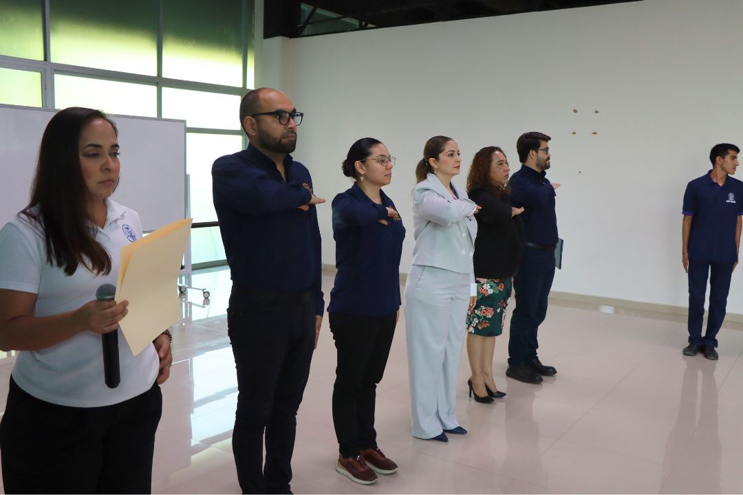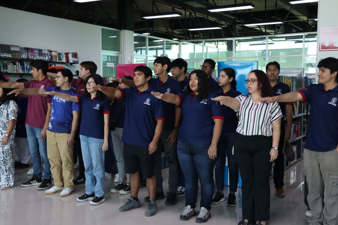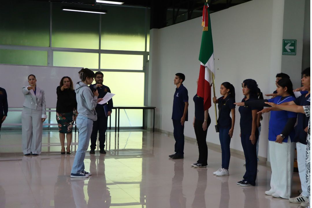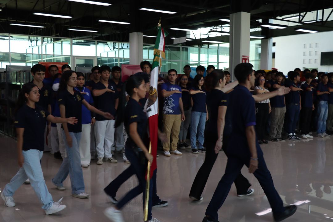 El acto cívico incluyó el juramento a la bandera, a cargo de la alumna Iris Arianna Salazar, del programa académico de Ingeniería en Tecnologías de la Información, así como la lectura de las efemérides del mes, presentada por la estudiante Gabriela Yarely Murrieta, también de dicho programa académico.
