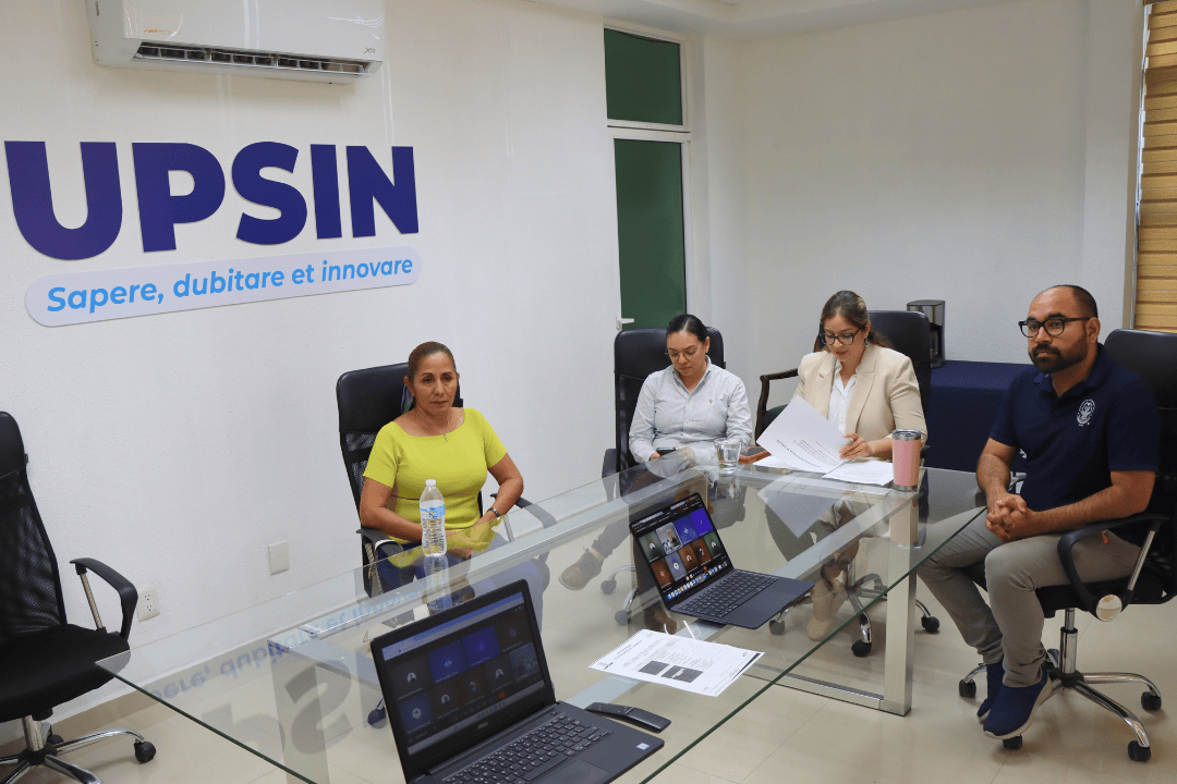 La MANC. Elva Patricia Saracho Martínez, rectora de la UPSIN, encabezó la reunión de manera presencial y dirigió los trabajos. Participaron también la Ing. Maritriny González Saiz, secretaria académica; el M.Ed. Antonio Medina Coronel, secretario administrativo; y el Lic. Johan Antonio Rivera, abogado general, como invitados.