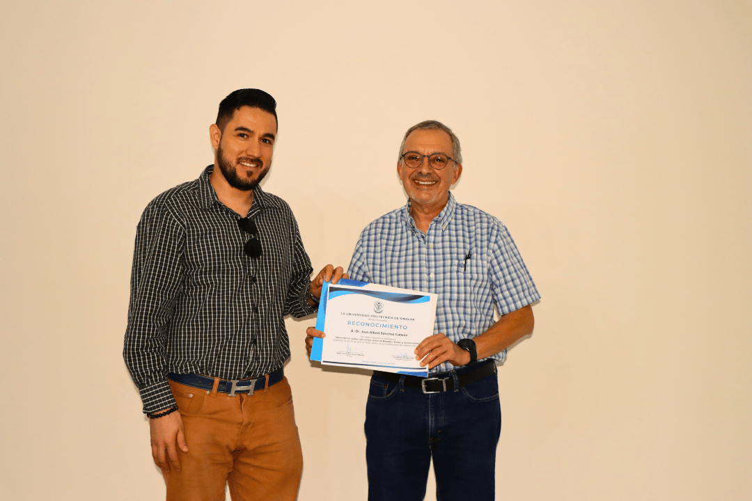 Al finalizar la jornada, el reconocimiento al ponente fue entregado por el Dr. Adrián González Castillo, director de los programas académicos de Ingeniería en Biotecnología e Ingeniería en Tecnología Ambiental.