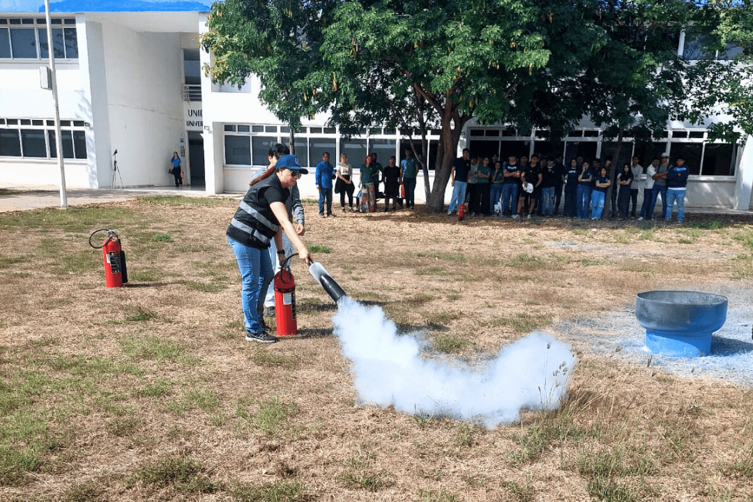 Durante el curso, las y los estudiantes analizaron la química y clasificación del fuego, identificaron sus métodos de propagación, utilizaron equipo de protección personal y practicaron técnicas de autosalvamento y manejo adecuado de extintores, consolidando competencias orientadas a la prevención.