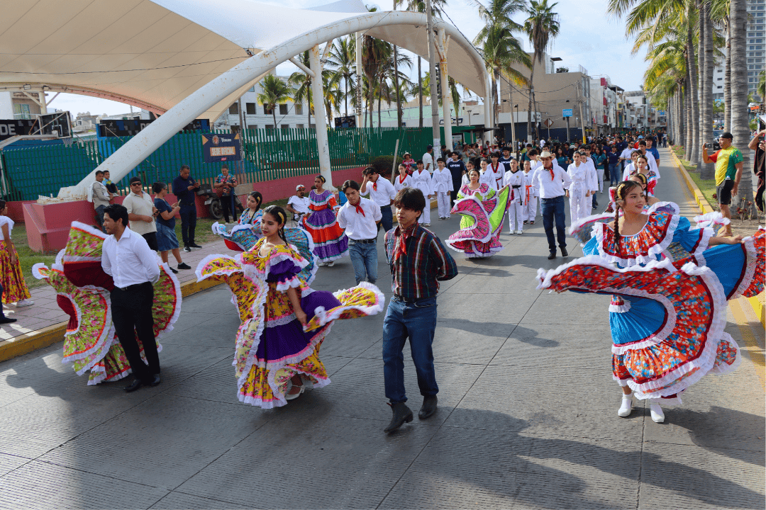 El malecón se convirtió en un mosaico de colores y emociones: tambores, música regional, porras y aplausos acompañaron a los representantes de UPSIN, quienes avanzaron entre sonrisas y muestras de reconocimiento por parte de las familias mazatlecas que se dieron cita desde temprana hora.
