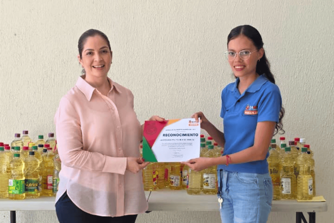 La Universidad Politécnica de Sinaloa realizó la entrega de 120 litros de aceite al Banco de Alimentos Mazatlán, como parte de las acciones que promueven la responsabilidad social y el apoyo a la comunidad.