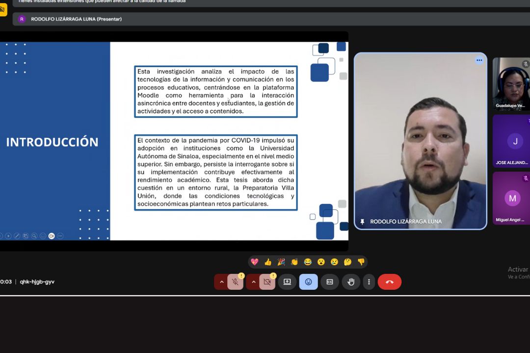 Se llevó a cabo de manera virtual el examen de grado de Rodolfo Lizárraga Luna, quien presentó la tesis titulada: “Impacto del uso de la plataforma Moodle en el rendimiento académico de estudiantes de segundo grado de bachillerato en la Universidad Autónoma de Sinaloa”.