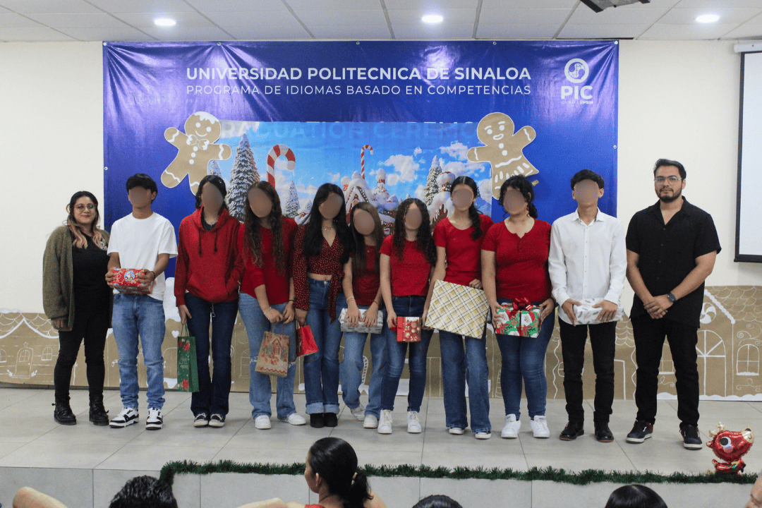 En un ambiente festivo y con una asistencia que llenó la sala, la Universidad Politécnica de Sinaloa llevó a cabo la Gala Navideña del Programa de Idiomas Basado en Competencias (PIC), un evento que reunió a estudiantes, familias, docentes y autoridades para celebrar el cierre del año y el avance académico de quienes forman parte del programa.