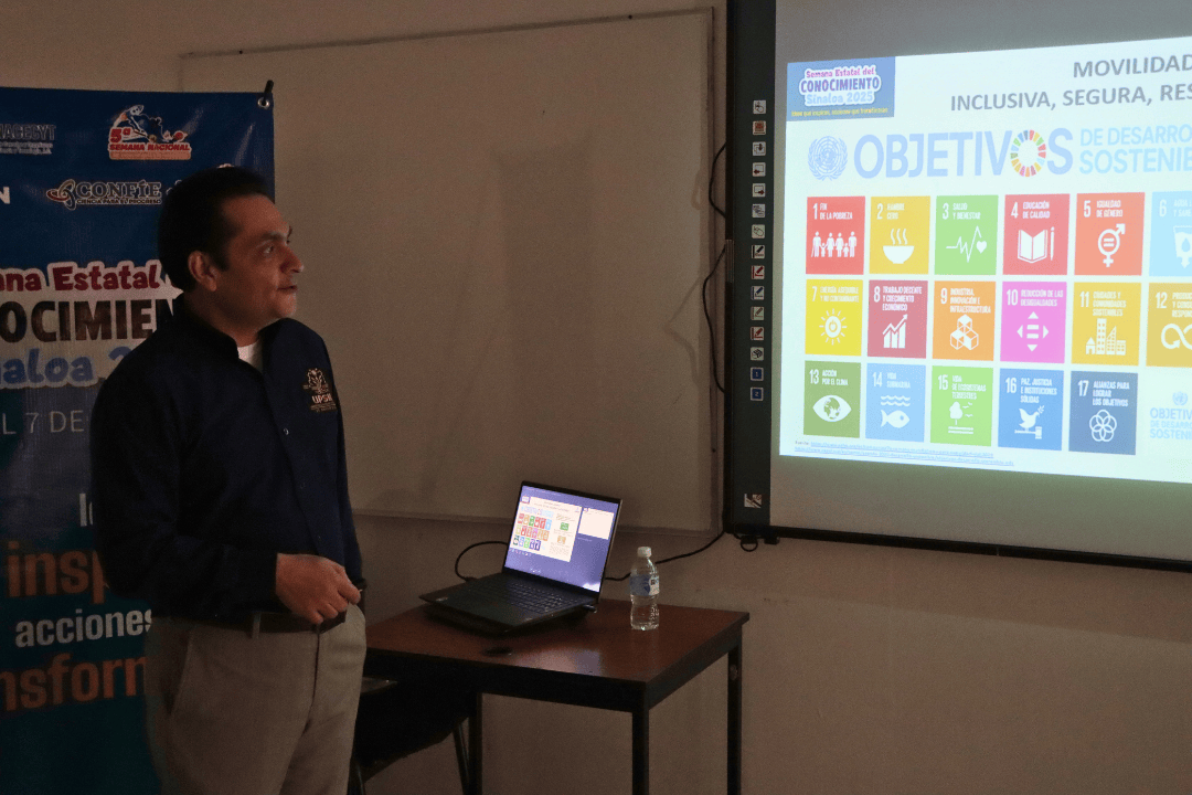La movilidad no solo implica desplazarse: también significa inclusión, seguridad, resiliencia y sostenibilidad. Con esta visión, la Universidad Politécnica de Sinaloa organizó la presentación “Movilidad y Seguridad Vial”, impartida por el M.A. Marco Antonio Prieto García, profesor de tiempo completo del Programa Académico de Ingeniería en Logística, como parte de las actividades de la Semana Estatal del Conocimiento 2025.