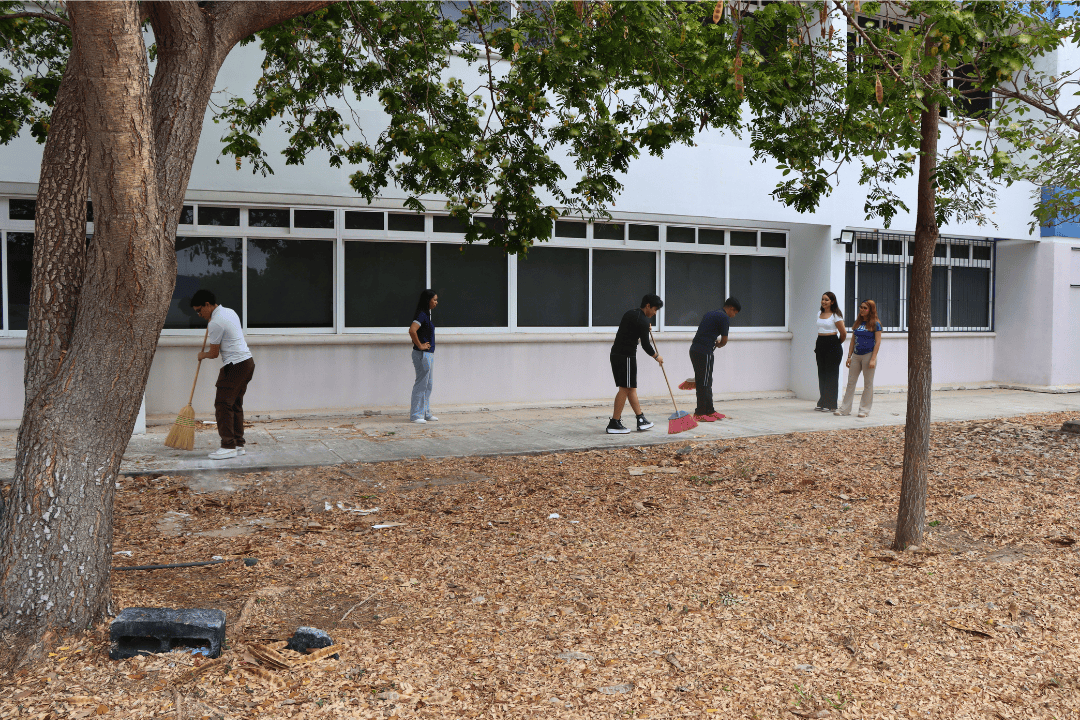En esta actividad participaron 80 estudiantes de distintos programas académicos, quienes, acompañados por profesoras y personal de las áreas de Desarrollo Estudiantil, Mantenimiento y Seguridad e Higiene, realizaron labores de limpieza en el área contigua al edificio de Docencias 2.