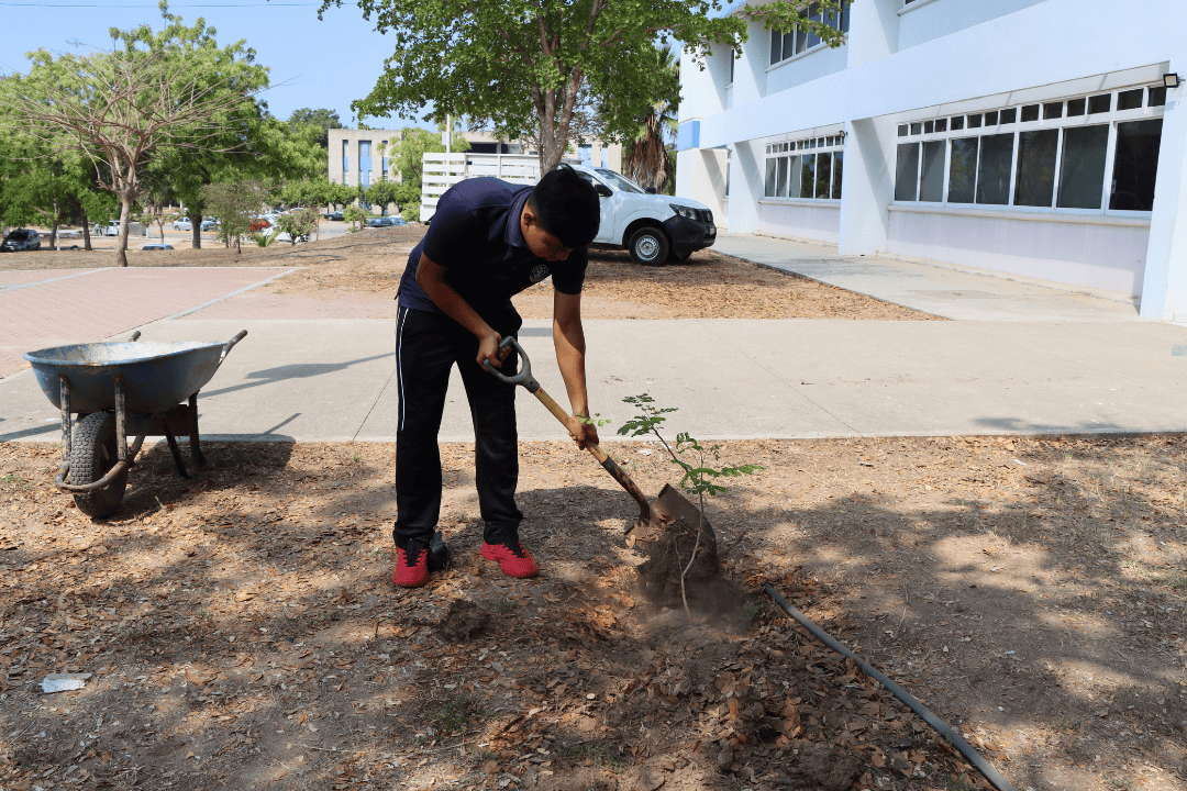 Como parte de la jornada, también se llevó a cabo la plantación de 14 árboles de diversas especies, entre ellas Amapa, Mango, Neem, Palo chino y Olivo negro, contribuyendo al fortalecimiento de las áreas verdes del campus y a la mejora del entorno universitario.