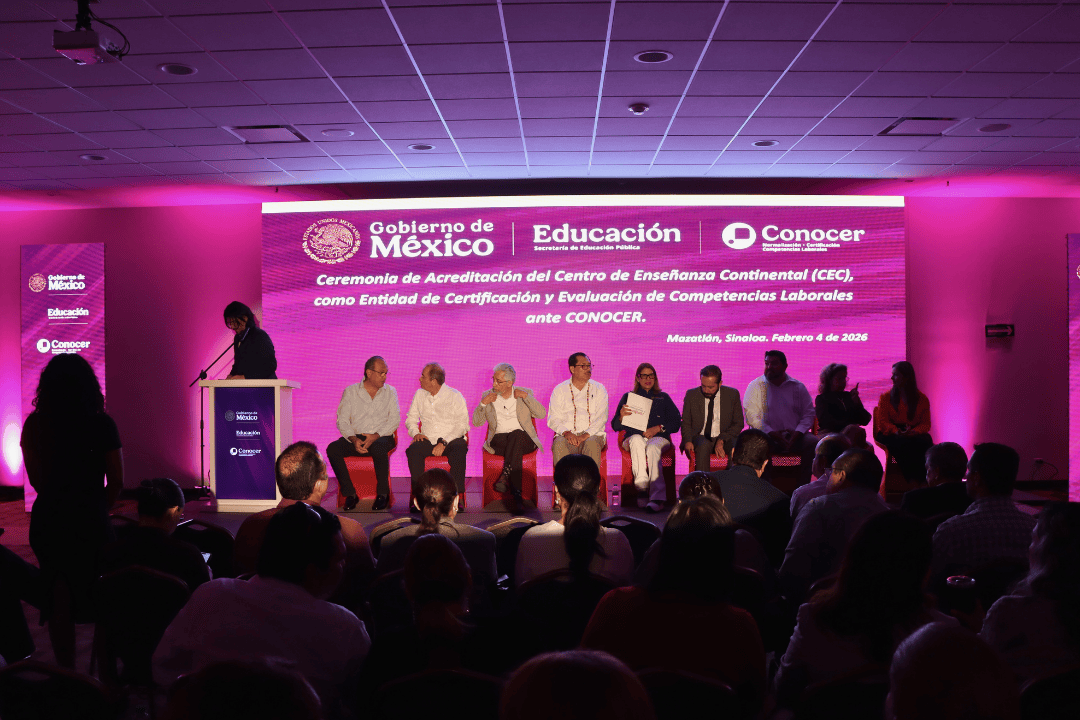 Durante el desarrollo del evento, la Mtra. Guillermina Alvarado Moreno, directora general del CONOCER, encabezó la entrega del certificado que acredita al CEC como Entidad de Certificación y Evaluación, destacando que la certificación de competencias laborales es un eje estratégico para la profesionalización del capital humano y el fortalecimiento de la empleabilidad en México. Asimismo, informó que actualmente existen más de mil 900 estándares de competencia a nivel nacional, desarrollados mediante comités de gestión integrados de manera tripartita por universidades, sector empresarial y gobierno, lo que permite responder a las realidades y prioridades de cada región del país.