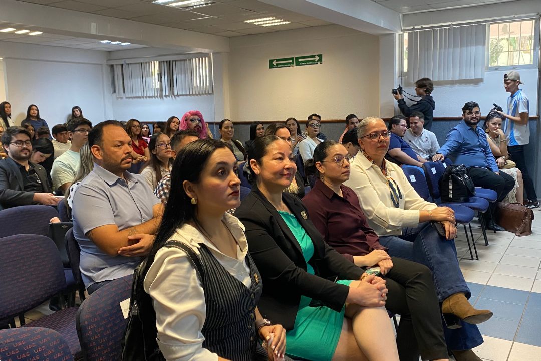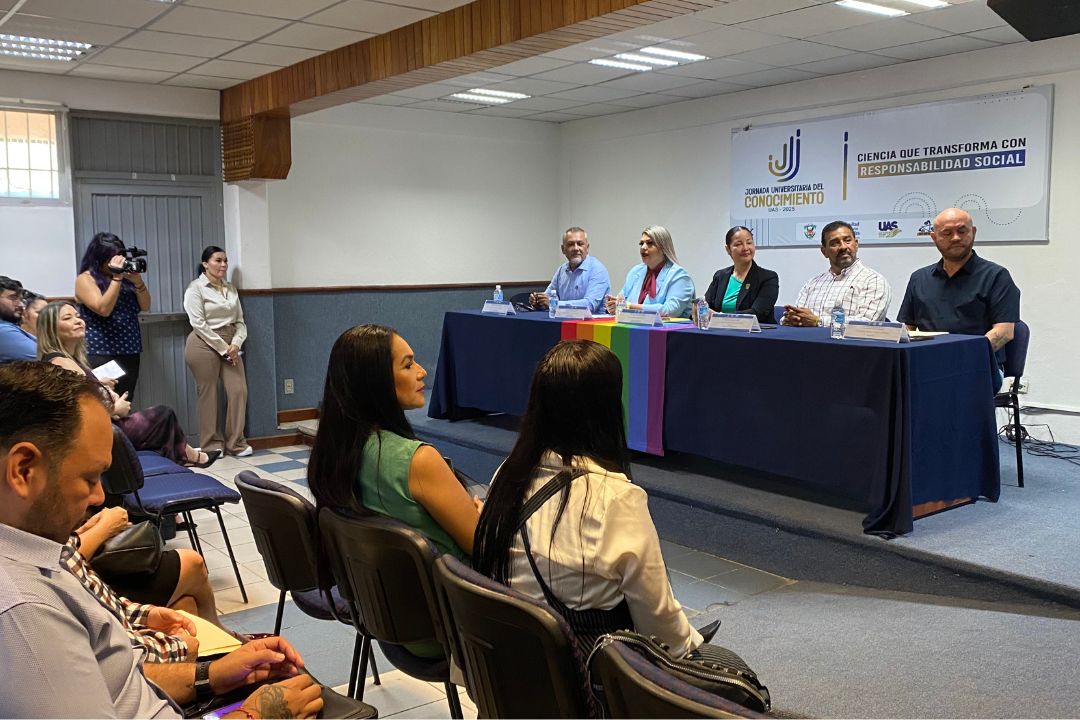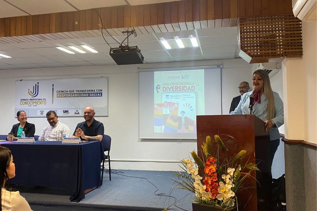 Mazatlán, Sinaloa.— En el marco de la Jornada Universitaria del Conocimiento de la Universidad Autónoma de Sinaloa, se llevó a cabo la conferencia “Diálogos desde la Diversidad” en la Facultad de Ciencias Sociales, actividad organizada por la Coordinación Municipal de Atención a la Comunidad LGBTQ+.