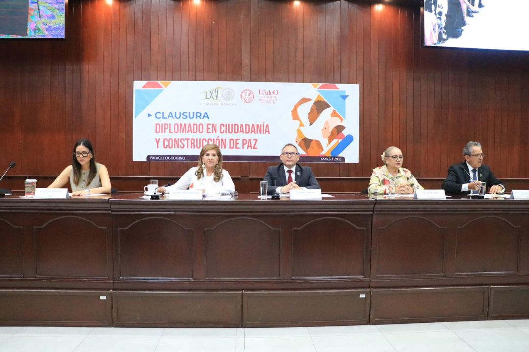 Se llevó a cabo la ceremonia de clausura del Diplomado en Ciudadanía y Construcción de Paz en las instalaciones del Congreso del Estado de Sinaloa, en la ciudad de Culiacán, tras seis meses de formación académica.