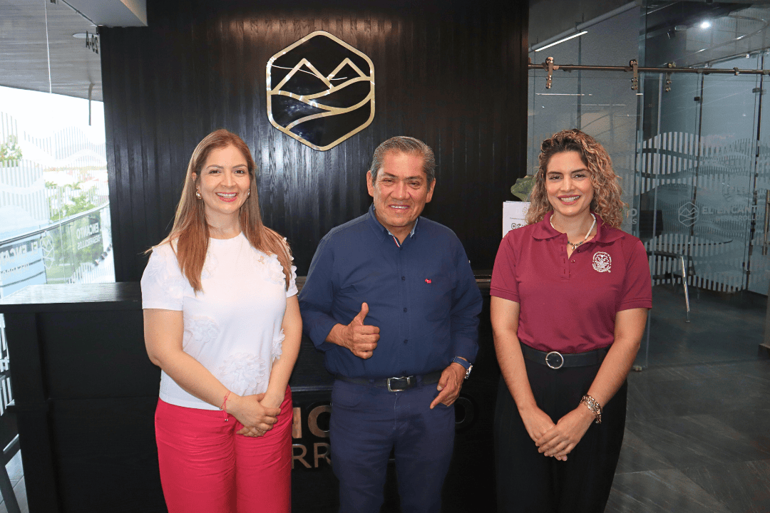 La MANC. Elva Patricia Saracho Martínez, rectora de la Universidad Politécnica de Sinaloa (UPSIN), y la M.A. Valeria Guadalupe Osuna Osuna, subdirectora de Vinculación y Extensión Universitaria, sostuvieron una reunión con el Arq. Raúl Ricardo Villavicencio, CEO de El Encanto Desarrollos, en las oficinas corporativas de la empresa en Mazatlán.