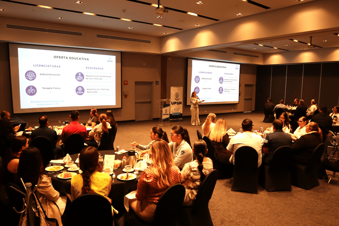 El evento incluyó testimoniales de empresas que han fortalecido sus equipos con egresados de la universidad, como el Acuario Mazatlán, Laquin (donde el 37% de la plantilla está integrada por egresados UPSIN) y la clínica de Terapia Física “Actívate”, cuyo personal está conformado casi en su totalidad por profesionistas formados en la institución.