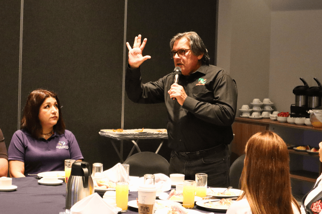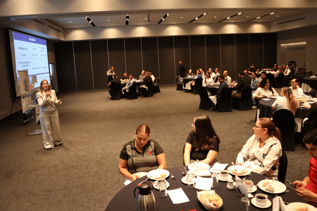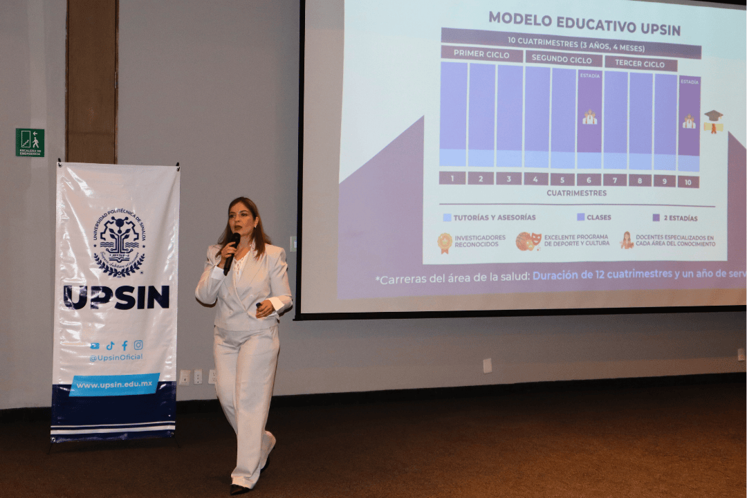 Asimismo, se expusieron los cambios en el modelo educativo de la UPSIN. Anteriormente, los estudiantes realizaban una única estadía final y dos estancias cortas de una y dos semanas; con la modificación ahora son dos estadías prácticas, lo que permite una inmersión mucho más profunda y permeable en el mundo laboral. Este esquema también contempla la posibilidad de obtener doble titulación, primero como Técnico Superior Universitario y posteriormente como Ingeniero o Licenciado, según el programa académico.