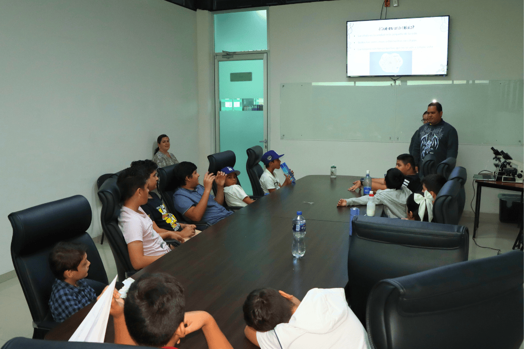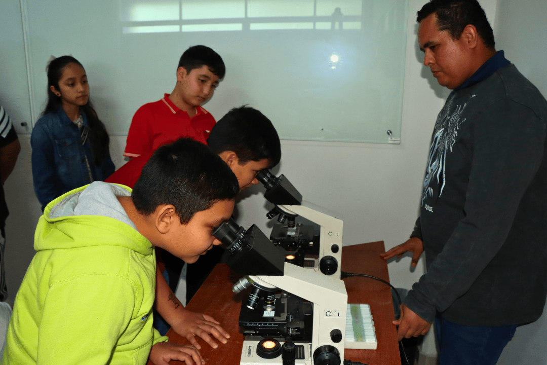 Asimismo, se llevó a cabo una introducción dinámica al mundo de la ciencia, donde conocieron de manera sencilla qué son las células, actividad impartida por estudiantes de la Maestría en Ciencias Aplicadas, Luis Ángel Nava Jiménez y Fátima del Carmen Fajardo García. Como complemento, las y los pequeños realizaron una actividad de observación con microscopio, participando con entusiasmo y asombro.