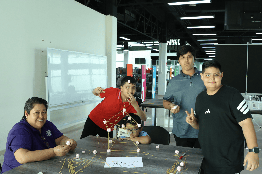 Durante la jornada, 14 niñas y niños participaron activamente en diversas actividades diseñadas para estimular la curiosidad, la creatividad y el trabajo en equipo. Entre ellas, disfrutaron de la lectura de un cuento, así como de un reto colaborativo que consistió en construir la torre más alta utilizando espagueti y bombones.
