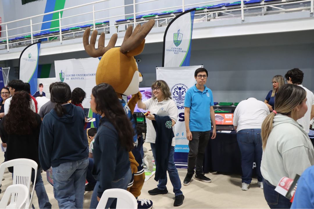 Por parte de la Universidad Politécnica de Sinaloa asistieron representantes de los programas académicos de Ingeniería en Animación y Efectos Visuales, Ingeniería en Tecnologías de la Información, Ingeniería en Biotecnología, así como personal del Departamento de Vinculación, acompañados por la mascota deportiva de UPSIN, quien animó a los asistentes e invitó a los jóvenes a conocer la experiencia universitaria que ofrece nuestra institución.