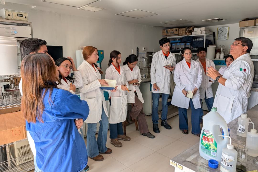 El Centro de Investigación y Asistencia en Tecnología y Diseño del Estado de Jalisco (CIATEJ) fue la siguiente parada, donde el personal del área ambiental mostró a los estudiantes aplicaciones de nanopartículas enfocadas en la reducción del impacto ambiental en procesos industriales.