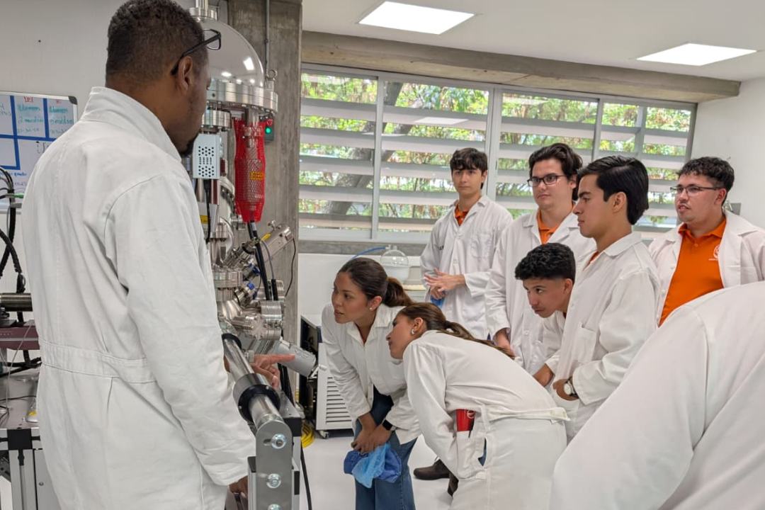 La primera visita se realizó en las instalaciones del Instituto Tecnológico y de Estudios Superiores de Occidente (ITESO), donde los estudiantes fueron recibidos por el Dr. Diego Mulato y su equipo de trabajo conformado por laboratoristas, investigadores y estudiantes del área de nanotecnología. Durante el recorrido, los asistentes conocieron el funcionamiento de diversos equipos especializados como XPS, AFM, EDS, así como cámaras de ultra alto vacío y de alto vacío, entre otros.