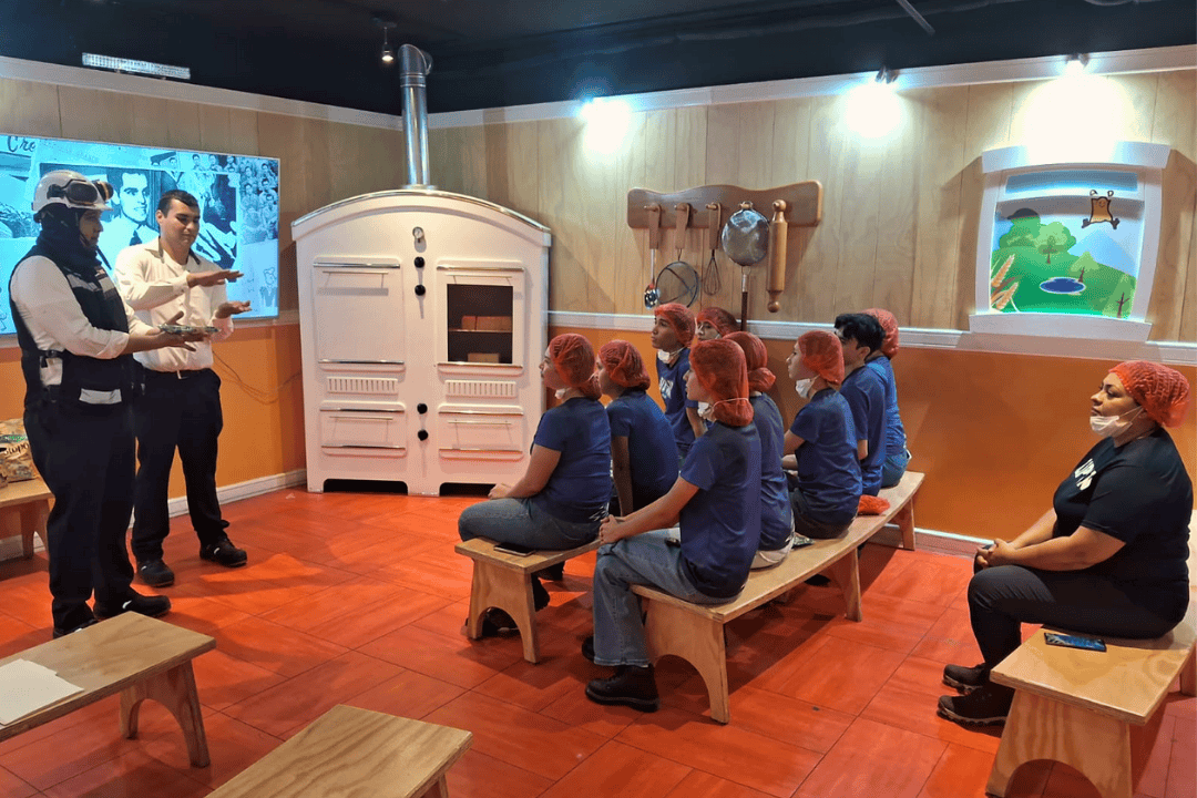 Durante la visita, el personal de BIMBO explicó cómo opera la planta y detalló los controles de riesgo, los mecanismos de prevención y la señalización que utilizan para garantizar la seguridad del personal. Asimismo, describieron el manejo seguro de materiales y la operatividad de emergencias, lo que permitió al grupo comprender la importancia de implementar protocolos integrales en una industria alimentaria.